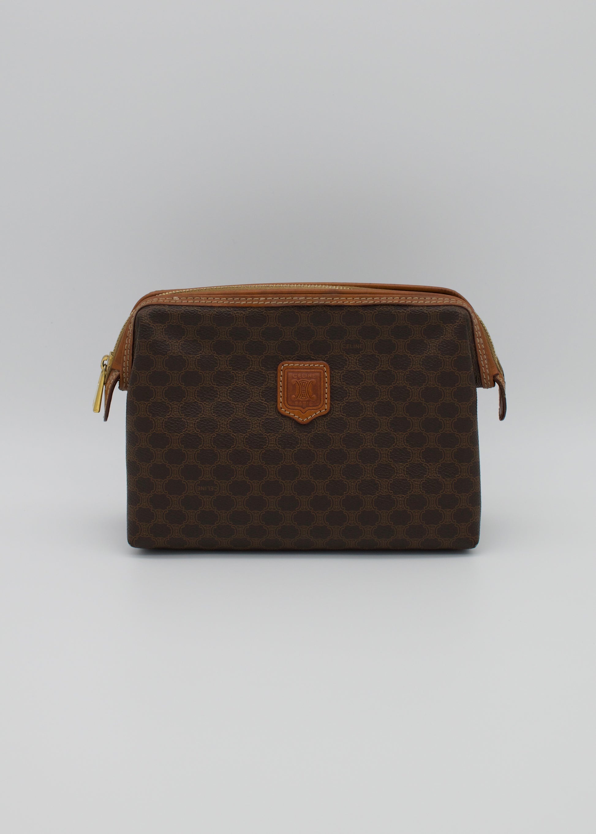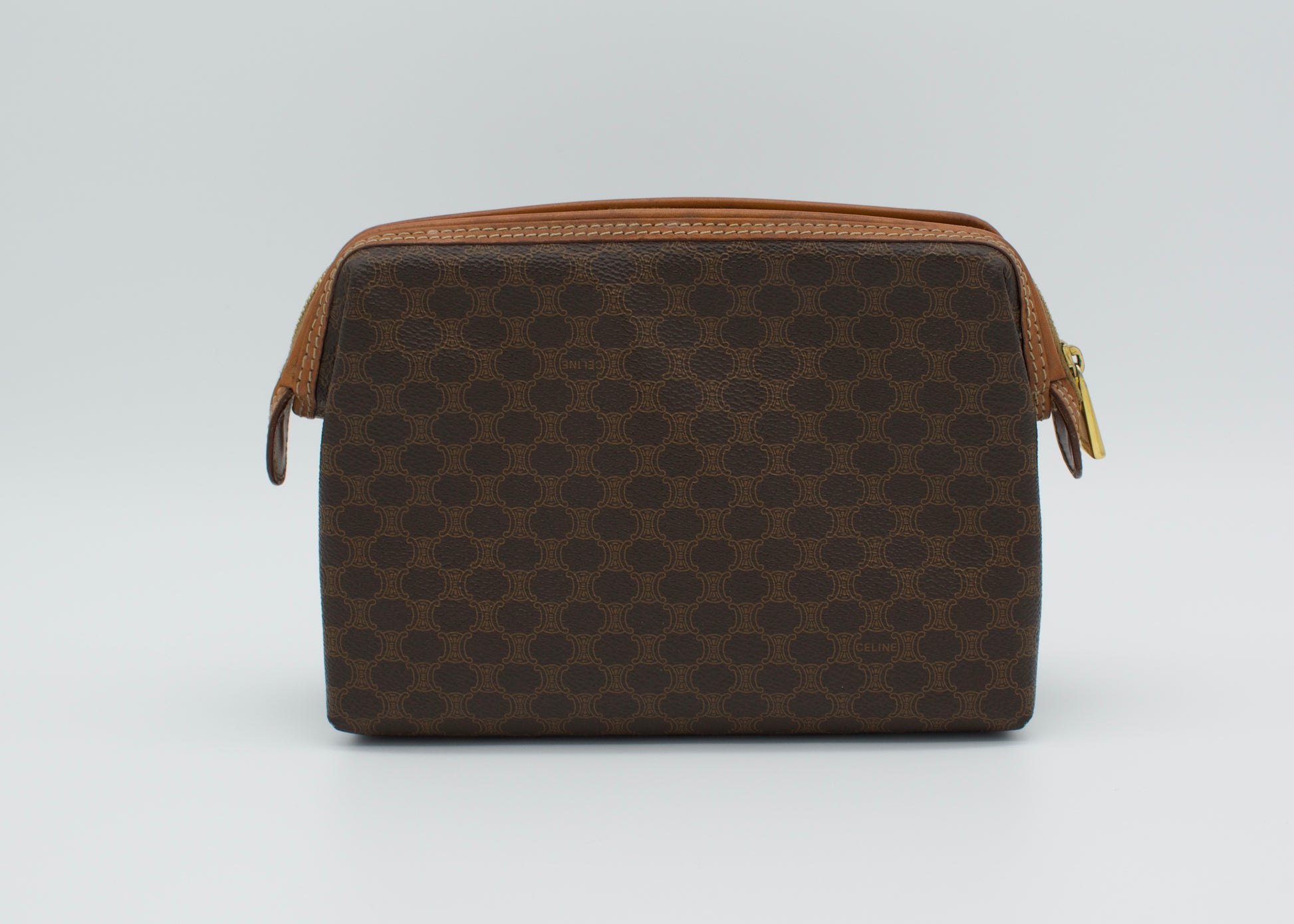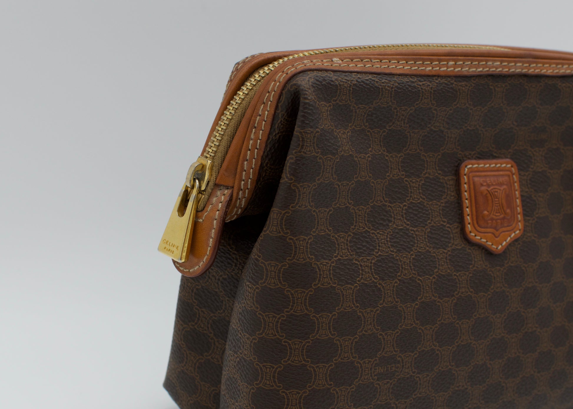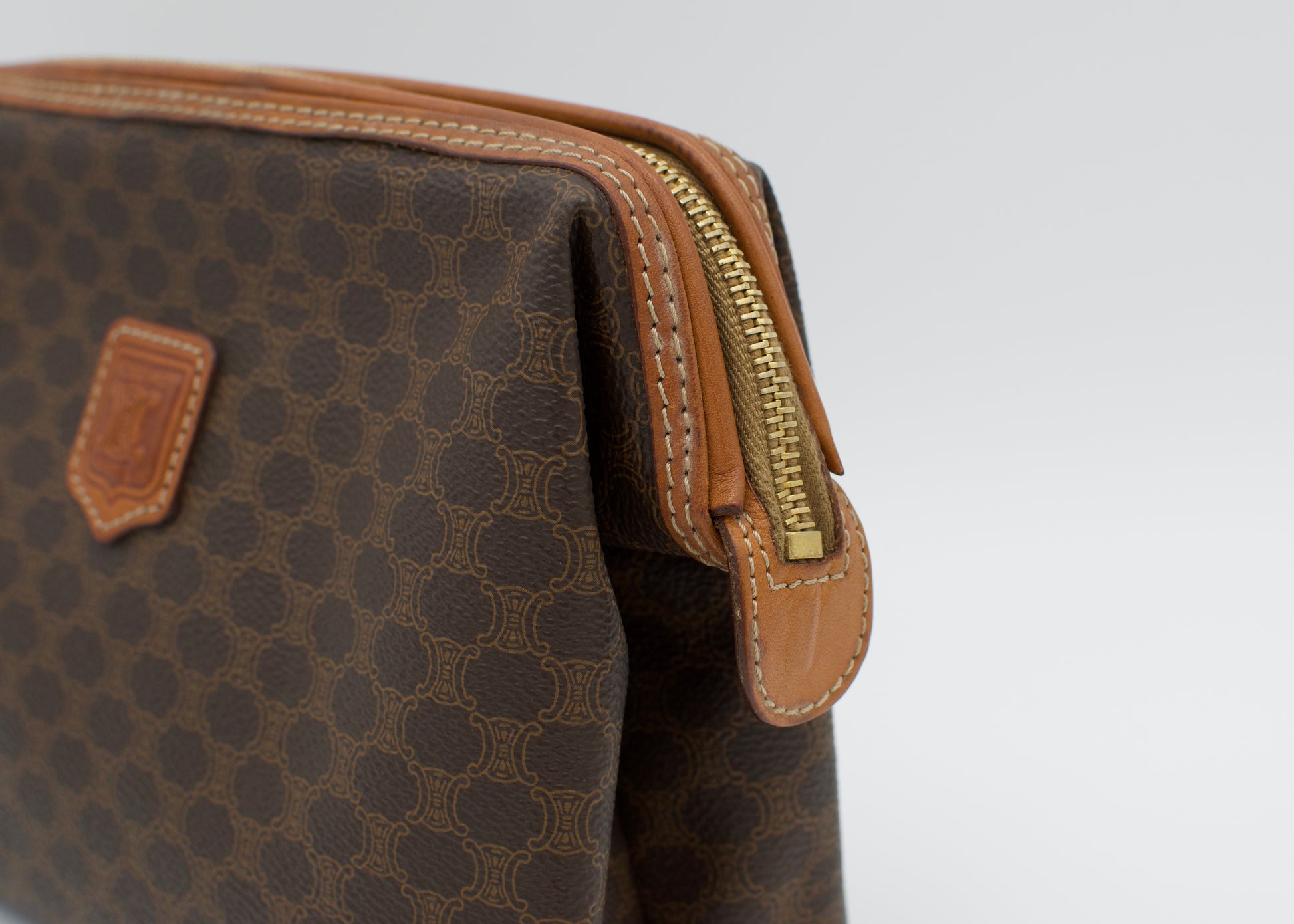 This Celine Macadam Portfolio Cosmetic Pouch is an exquisite vintage gem. The exterior is made of brown Macadam-coated canvas trimmed in leather, sealed with gold-tone hardware. Compact yet spacious, it features thoughtful internal organization in a structured—but supple—silhouette. Few pieces whisper of 1990s elegance quite like this—understated, refined, and beautifully versatile, ideal as a travel companion or a stylish catchall in larger purses.