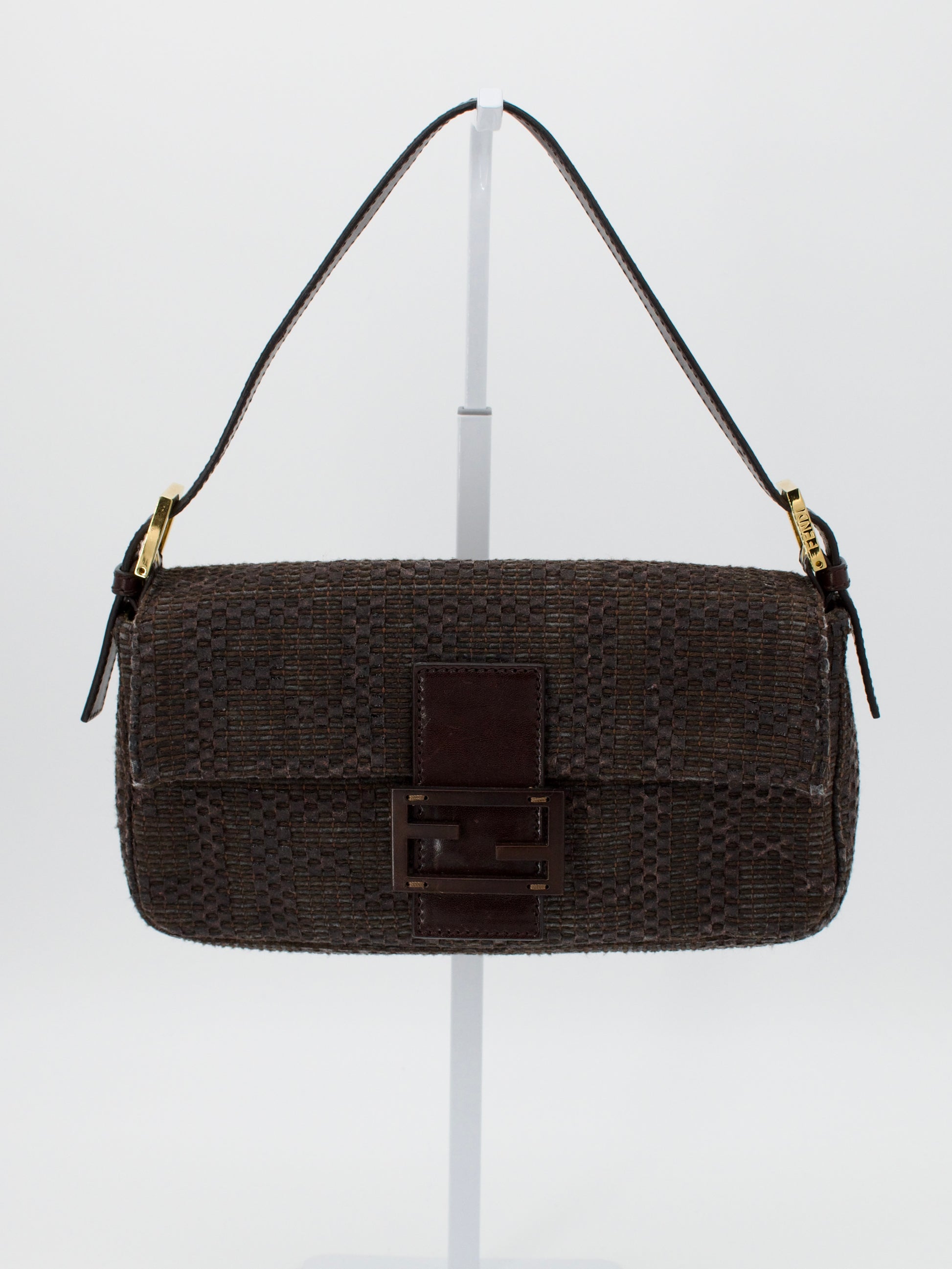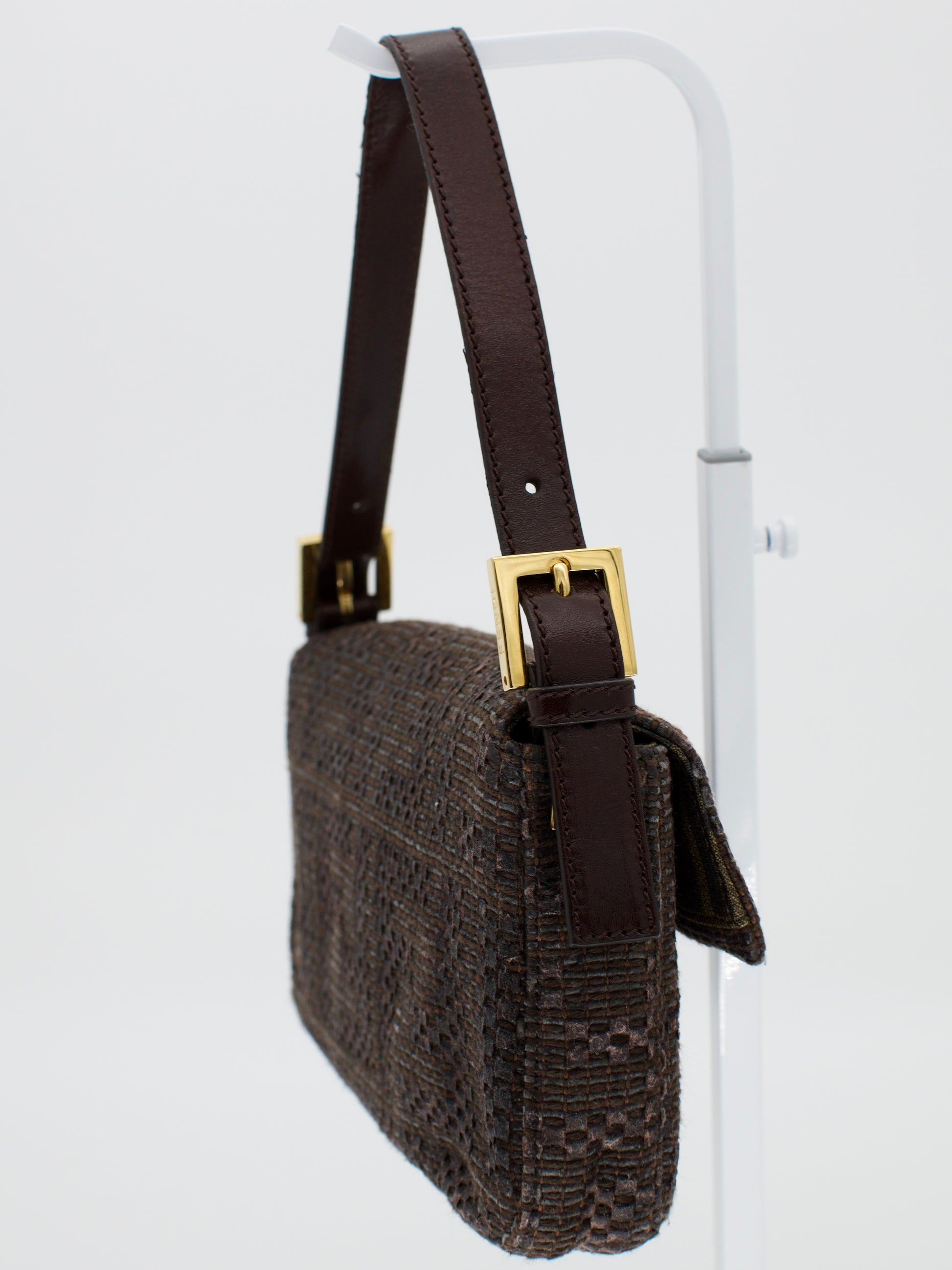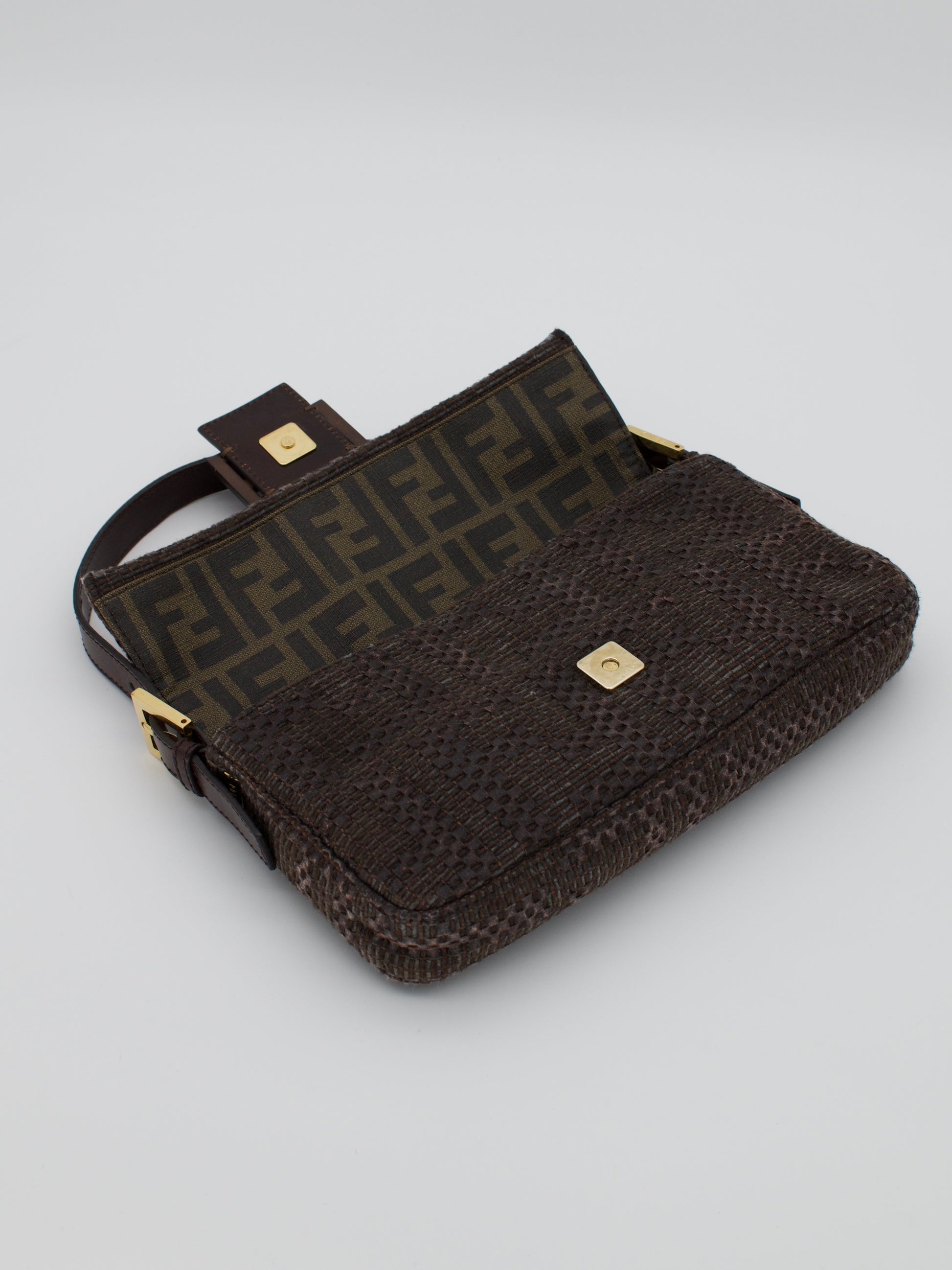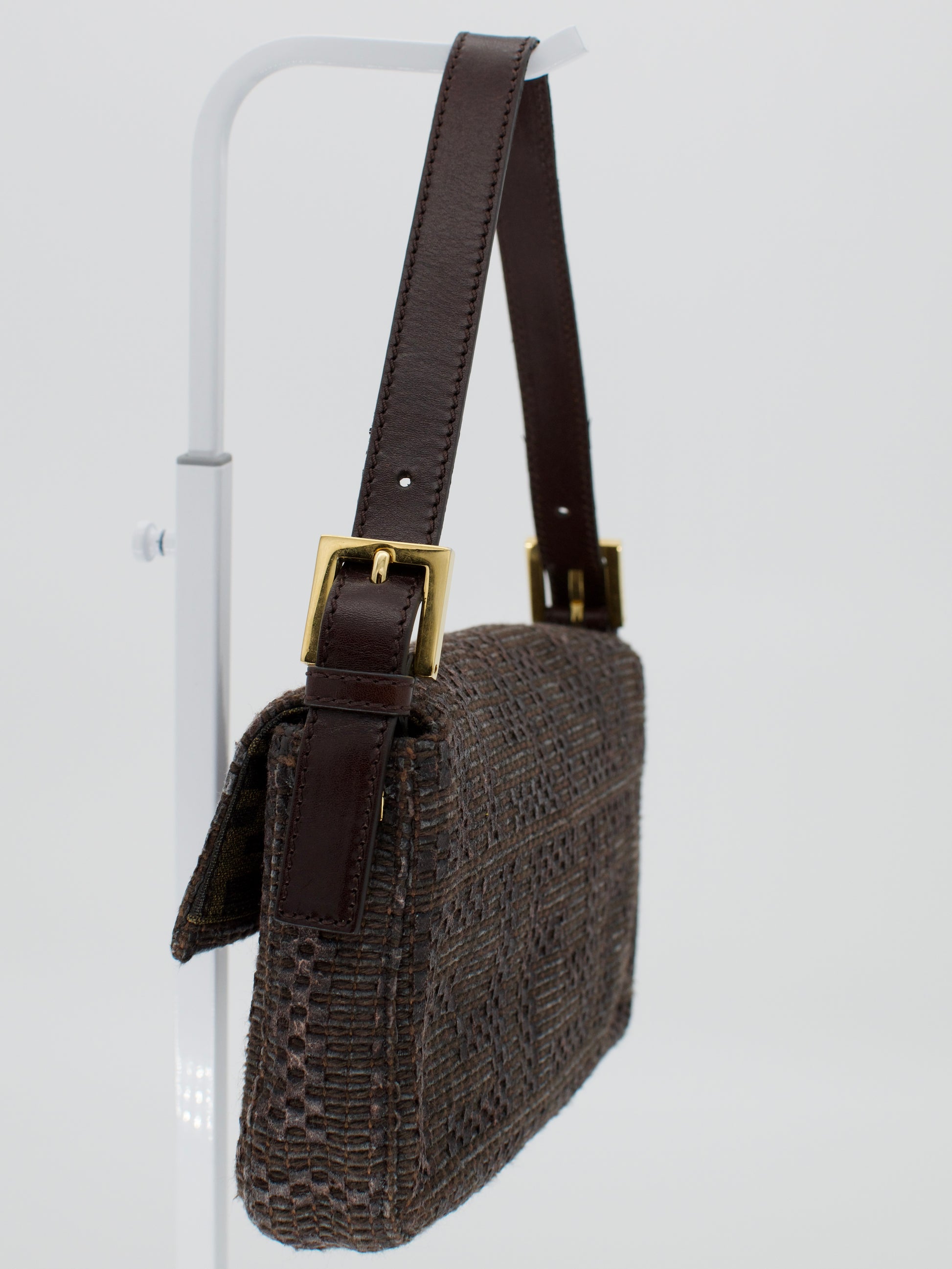 From the 2009 collection. This brown vintage FF Baguette is crafted in woven leather with a distinctive zucca monogram pattern. Made in Italy. This is a beautiful vintage piece suitable for everyday wear.