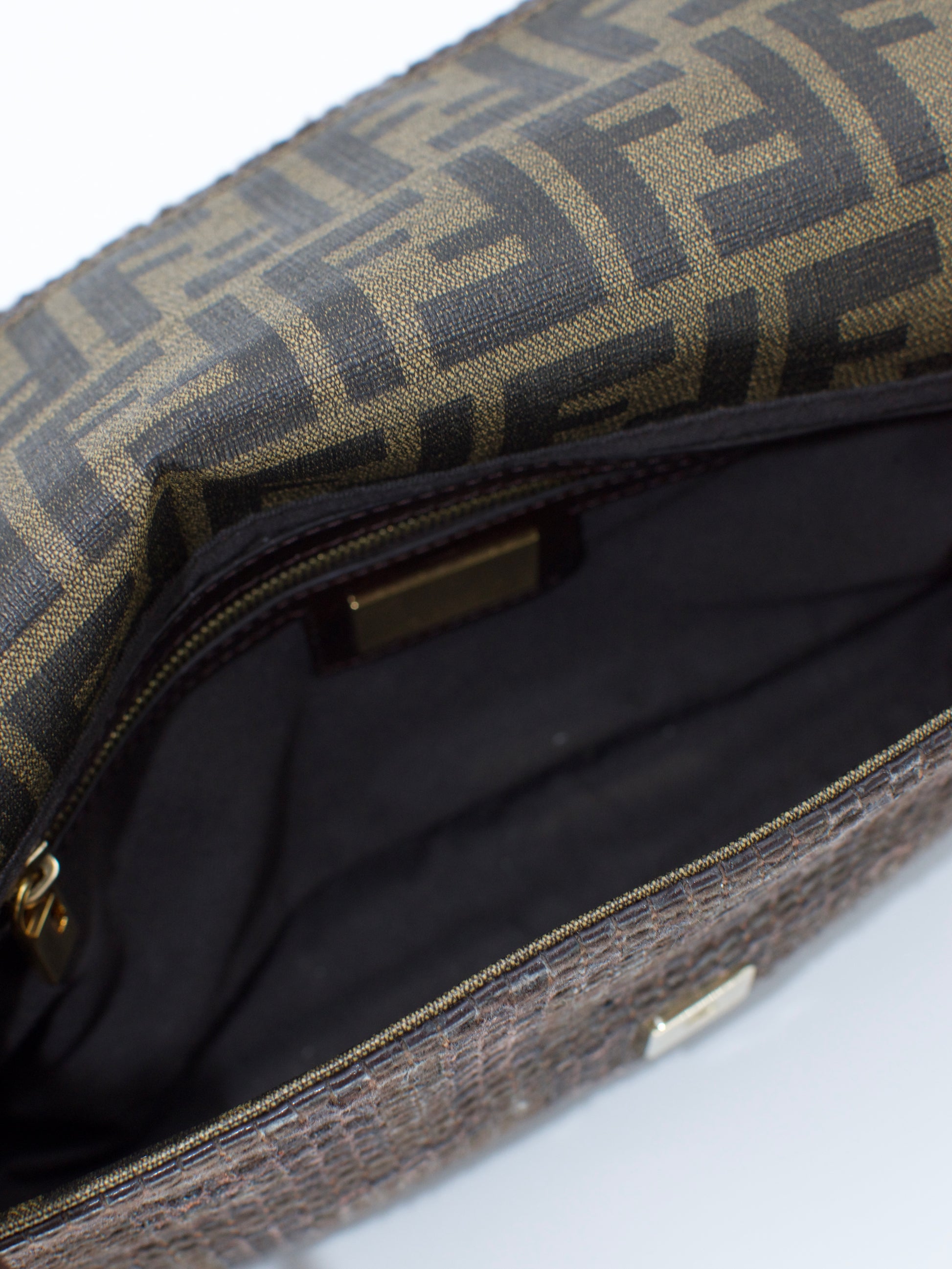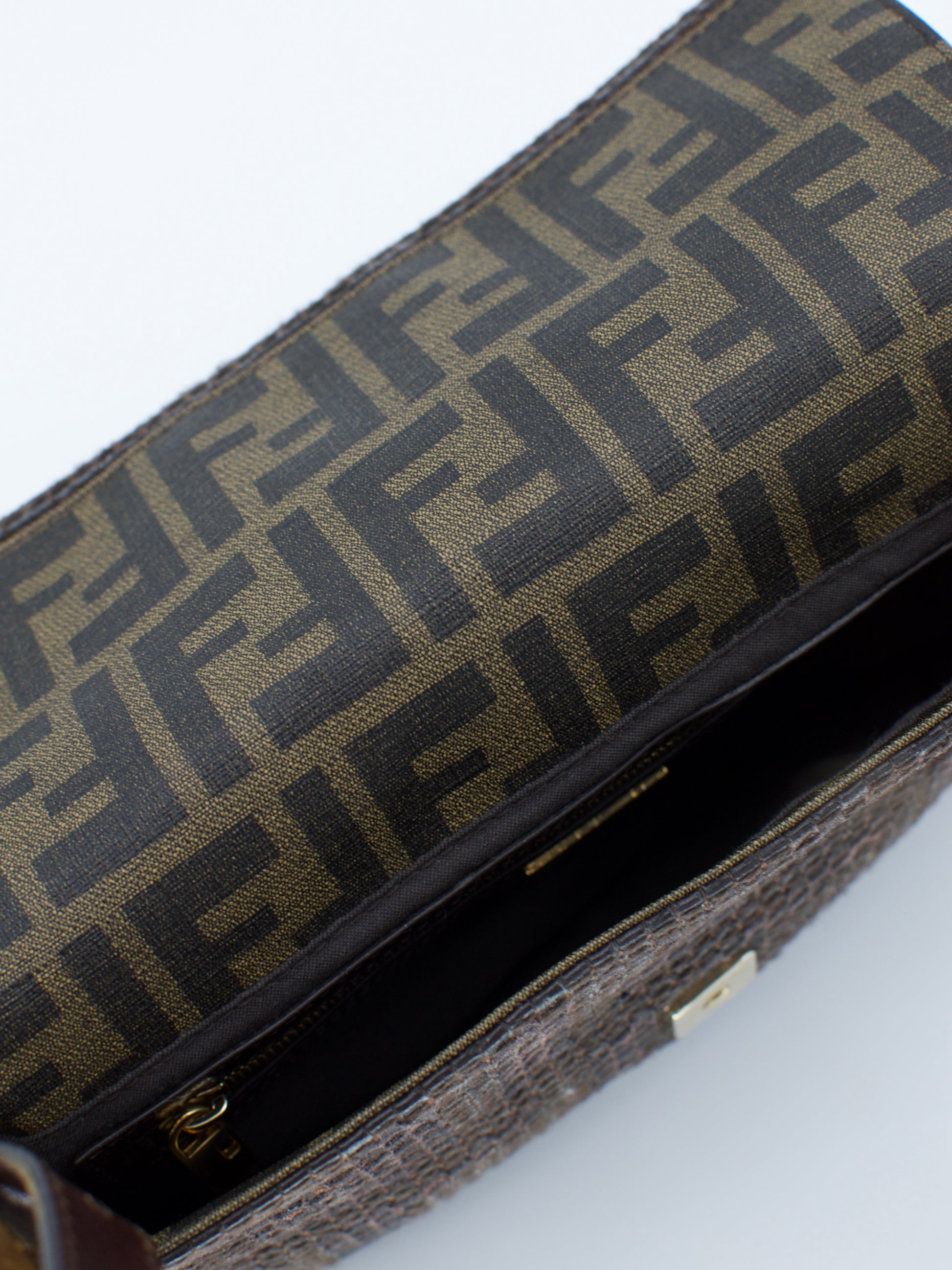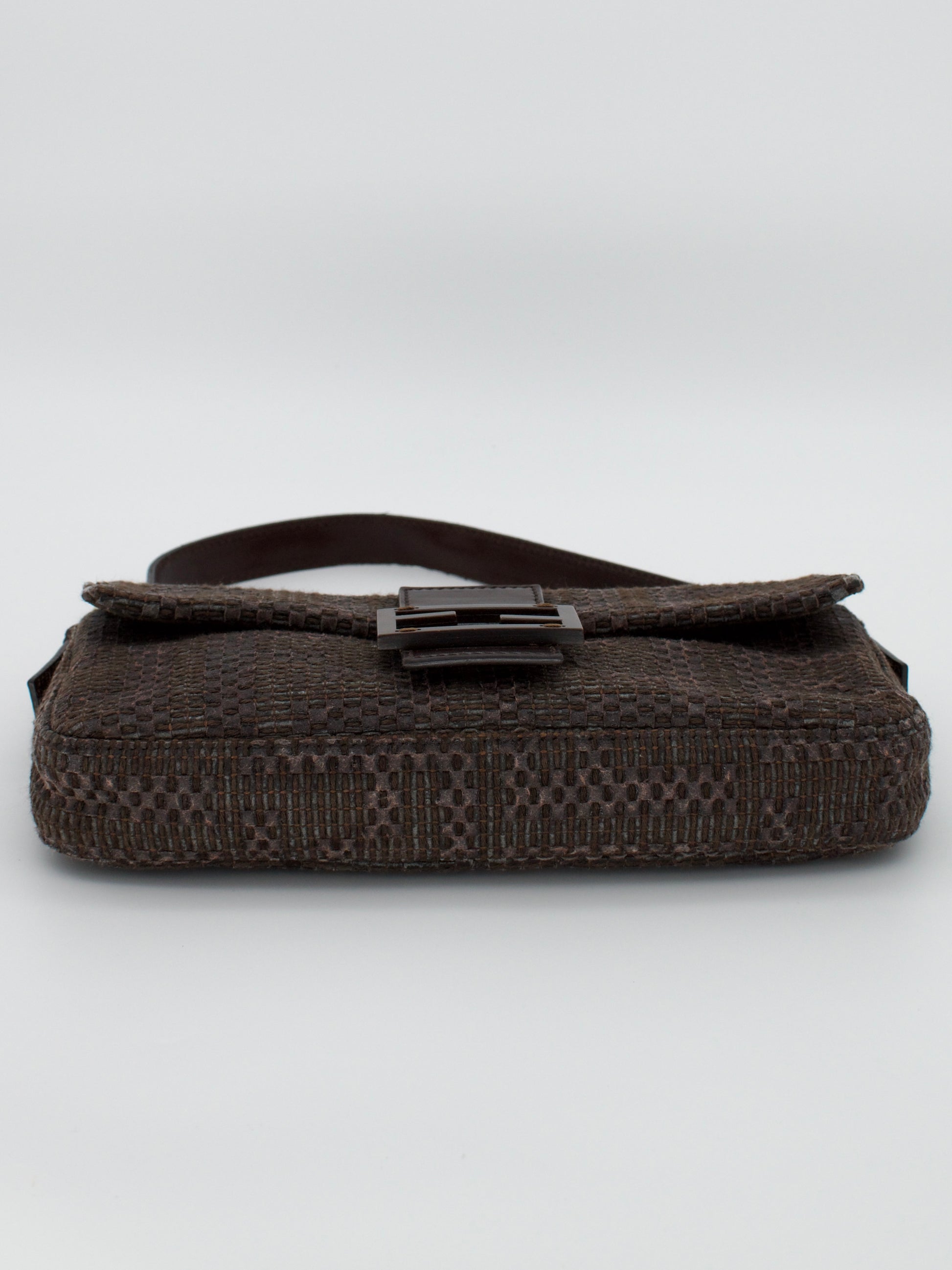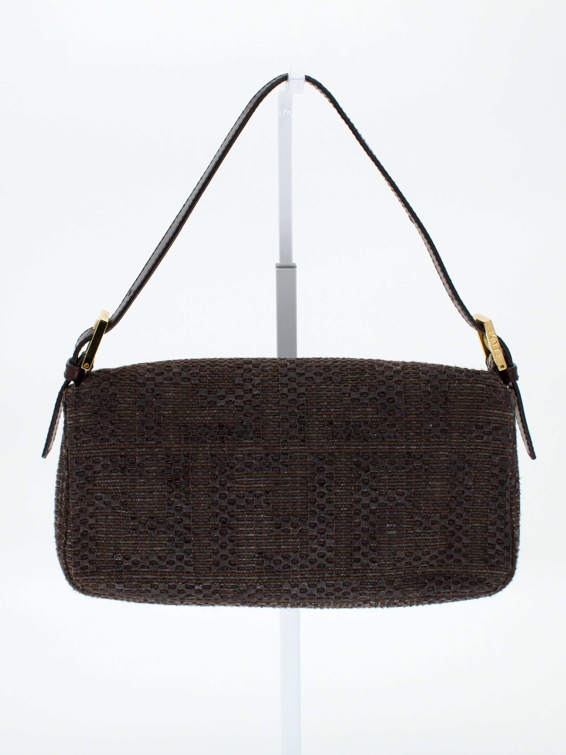 From the 2009 collection. This brown vintage FF Baguette is crafted in woven leather with a distinctive zucca monogram pattern. Made in Italy. This is a beautiful vintage piece suitable for everyday wear.