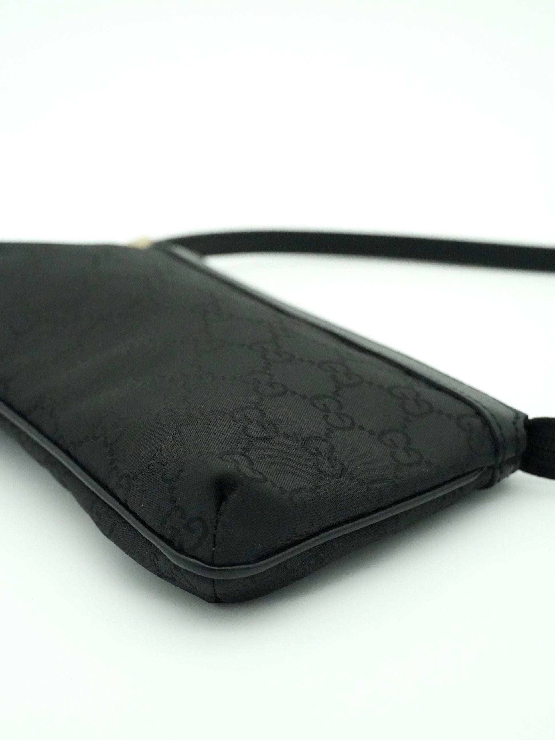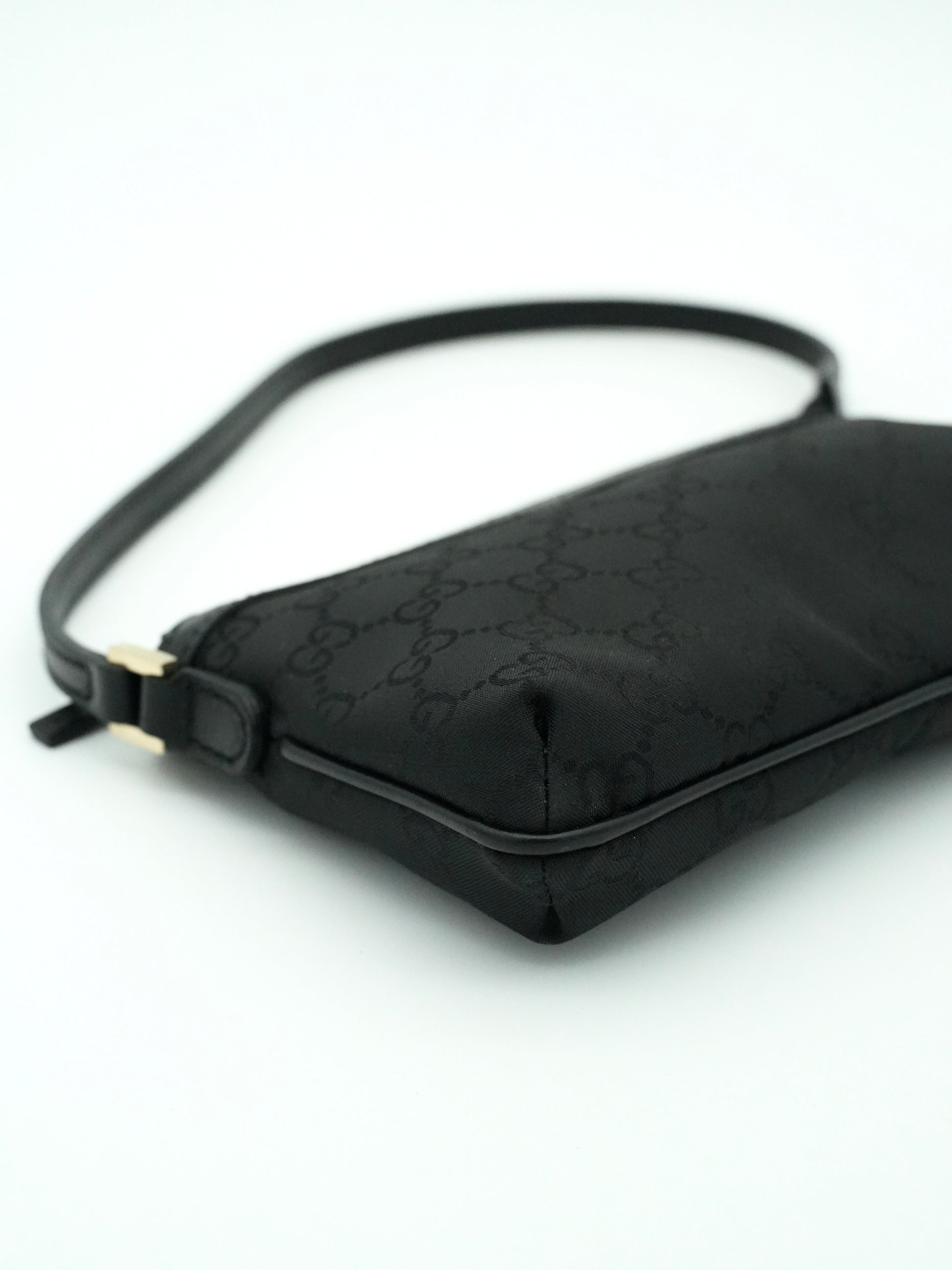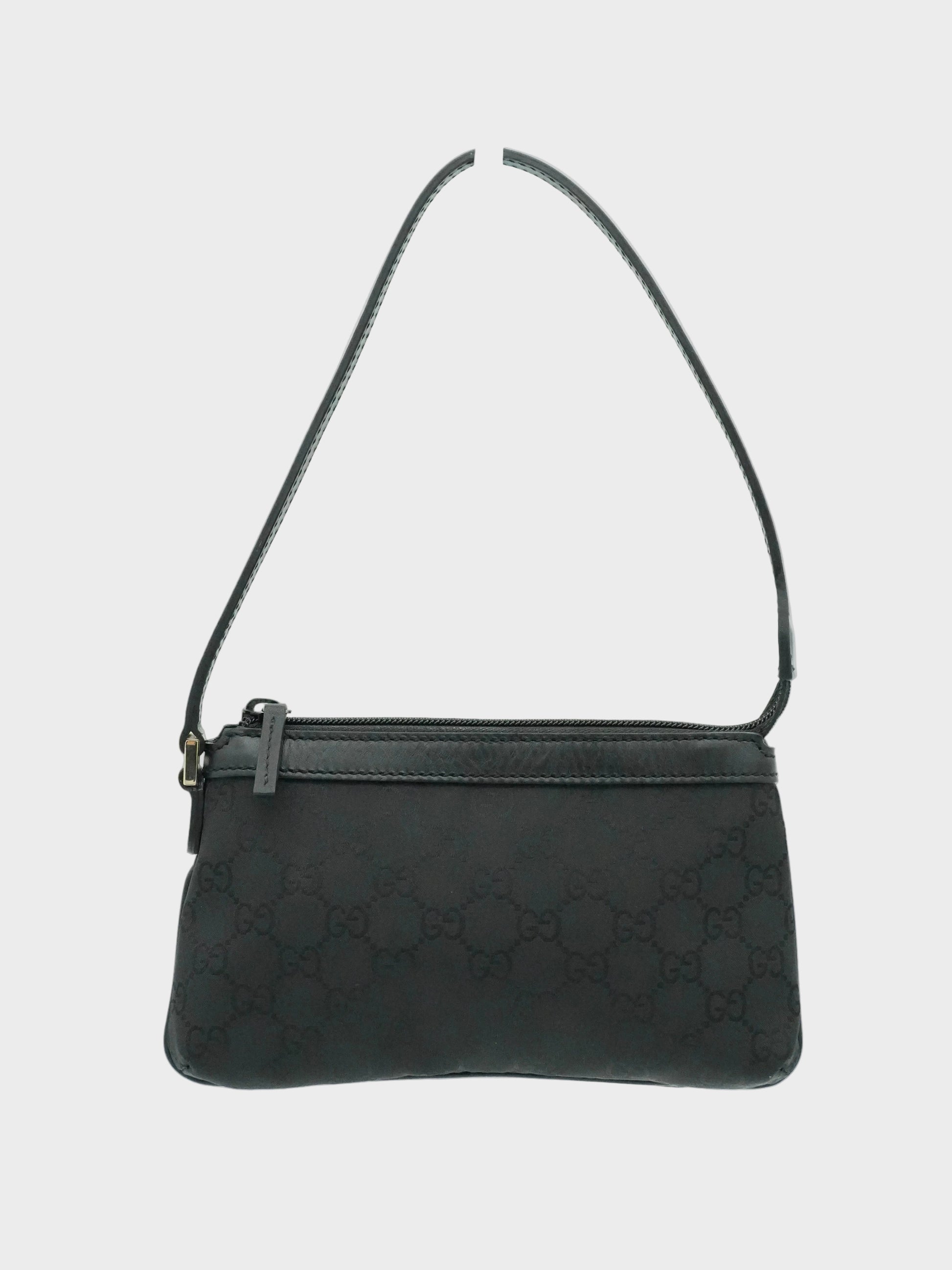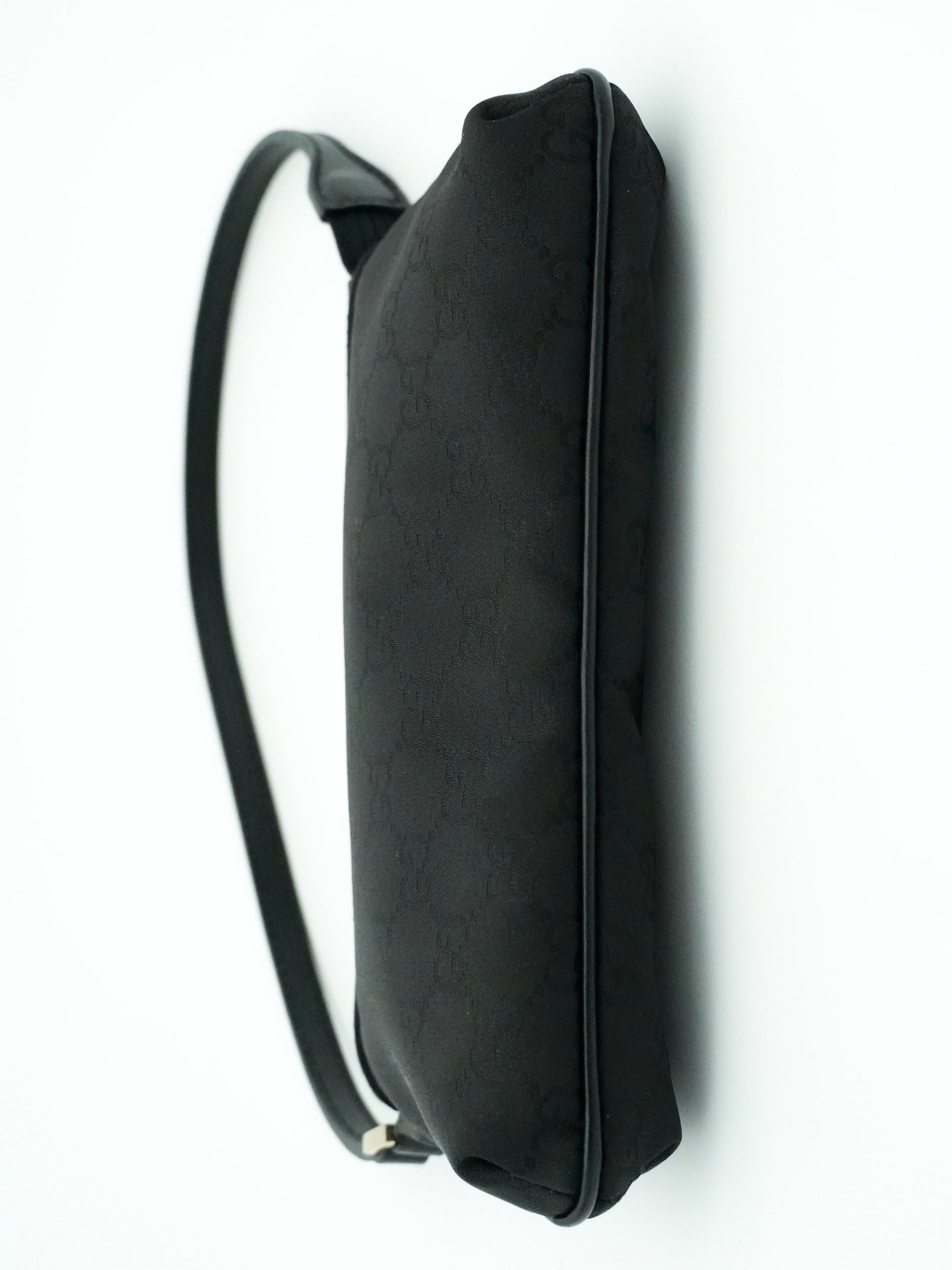 Elevate your everyday carry with this iconic Gucci shoulder bag in classic black supreme canvas monogram. This Gucci GG Canvas Black Shoulder Bag combines iconic monogram canvas with sleek black leather trim, embodying timeless luxury. Designed for both style and function, its spacious interior offers storage for essentials, while the shoulder strap ensures comfortable wear. A sophisticated accessory perfect for a night out!
