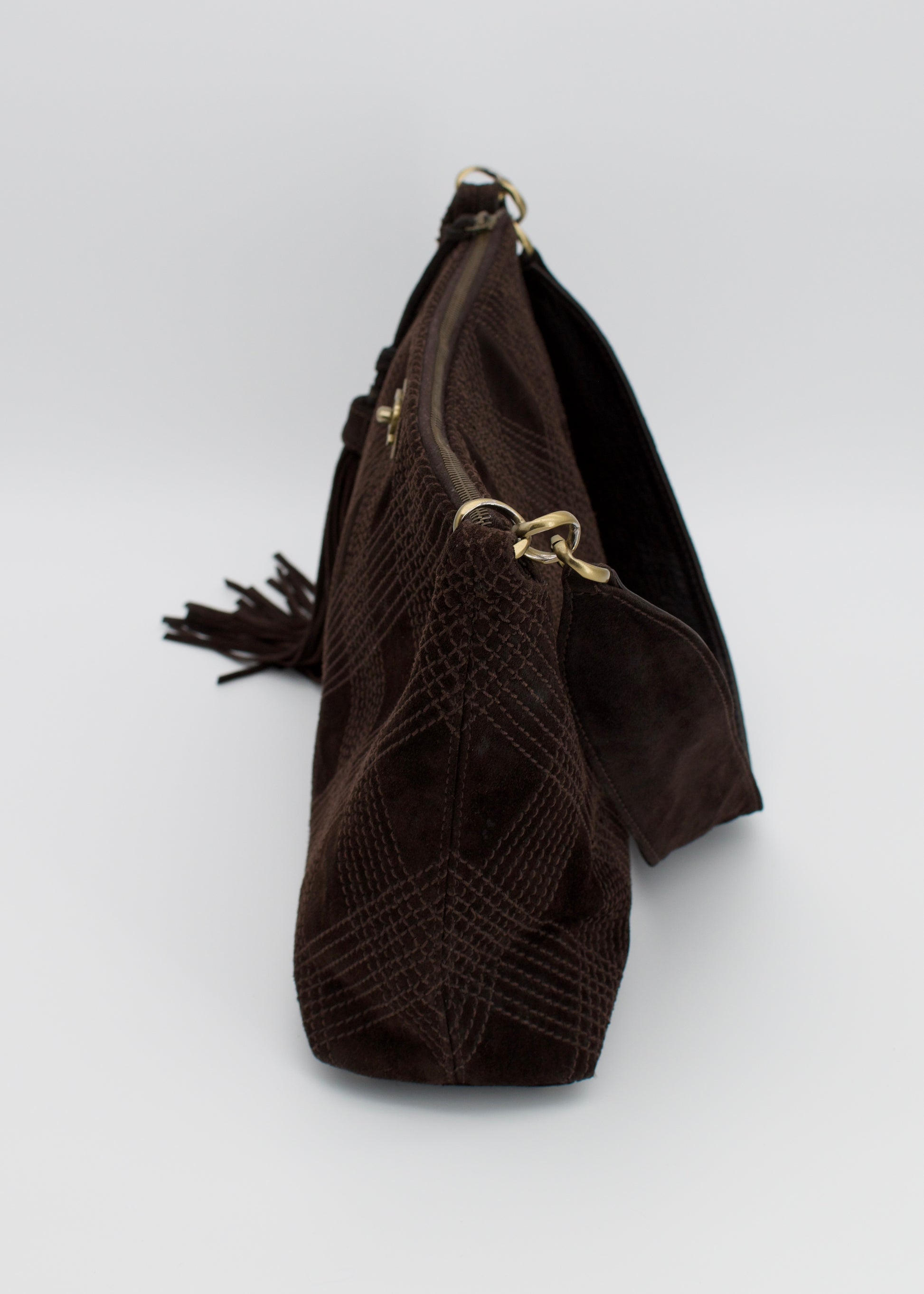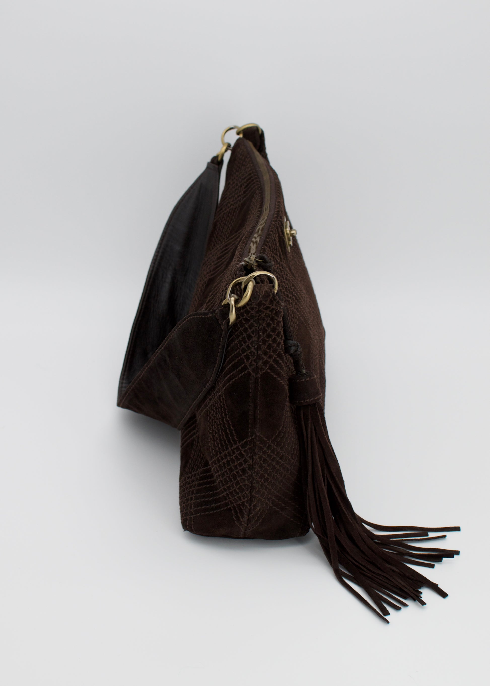 Vintage Quilted Brown Suede Tassel Hobo Bag